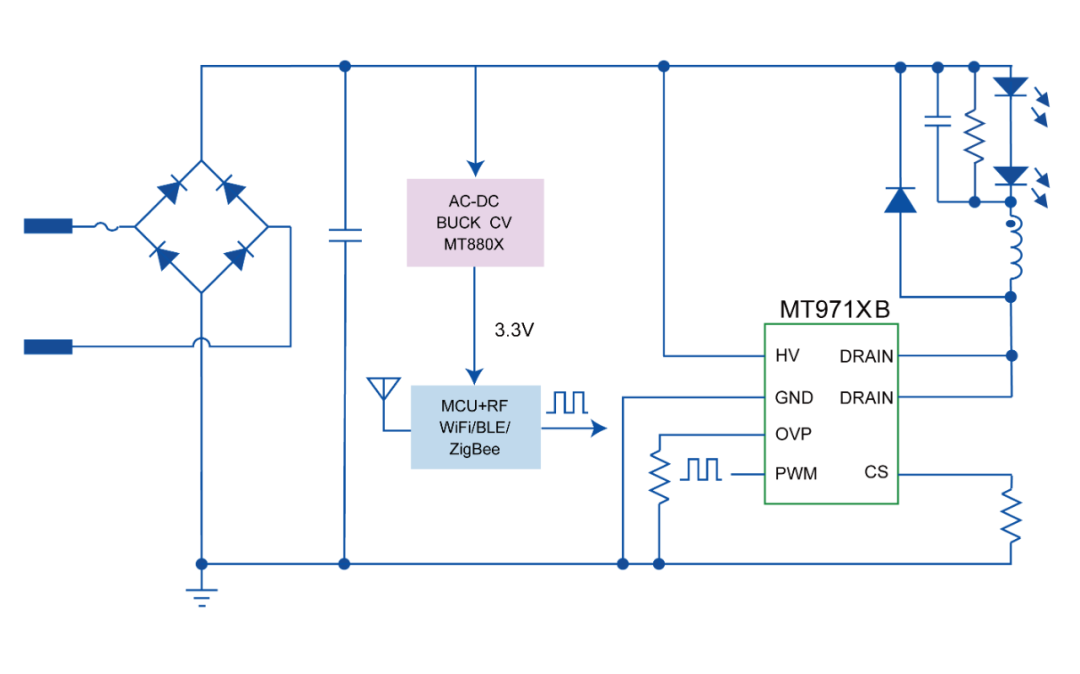 美芯晟科技推出模似調(diào)光平臺LED應用系列的新成員MT971XB,助力實現(xiàn)新一代智能照明。該器件是全程模似調(diào)光非隔離降壓型LED恒流驅(qū)動方案。芯片采用美芯晟自有專利技術(shù),擁有千分之一調(diào)光分辨率、全程調(diào)光無頻閃且具有穩(wěn)定的OVP保護功能、超低待機功耗<40mW@AC265V, 大幅提升智能燈的性能,給用戶帶來極致的體驗。