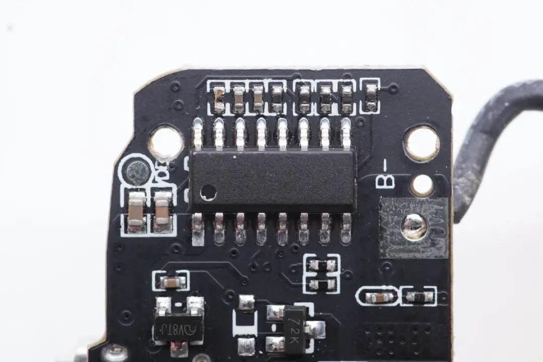 另一面設(shè)有移動(dòng)電源主控芯片以及一顆單片機(jī)。