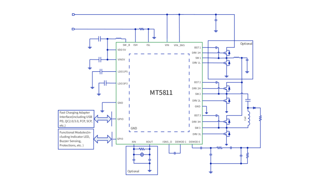 MT5811可延展性強(qiáng),配置定制化,采用高集成嵌入式SoC架構(gòu)及靈活接口設(shè)計,適用于各種低成本、低功耗應(yīng)用,可廣泛應(yīng)用于為5G智能終端、智能可穿戴設(shè)備、智能家居、物聯(lián)網(wǎng)、智能家電進(jìn)行無線充電的設(shè)備。