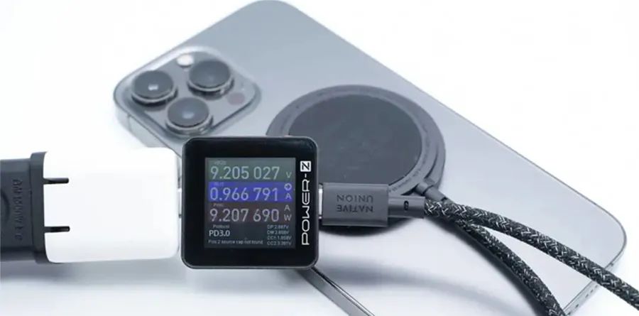 給iPhone 13Pro Max進(jìn)行無(wú)線充電,使用ChargerLAB POWER-Z KM002C測(cè)得輸入功率為9.2V 0.97A 9.21W。