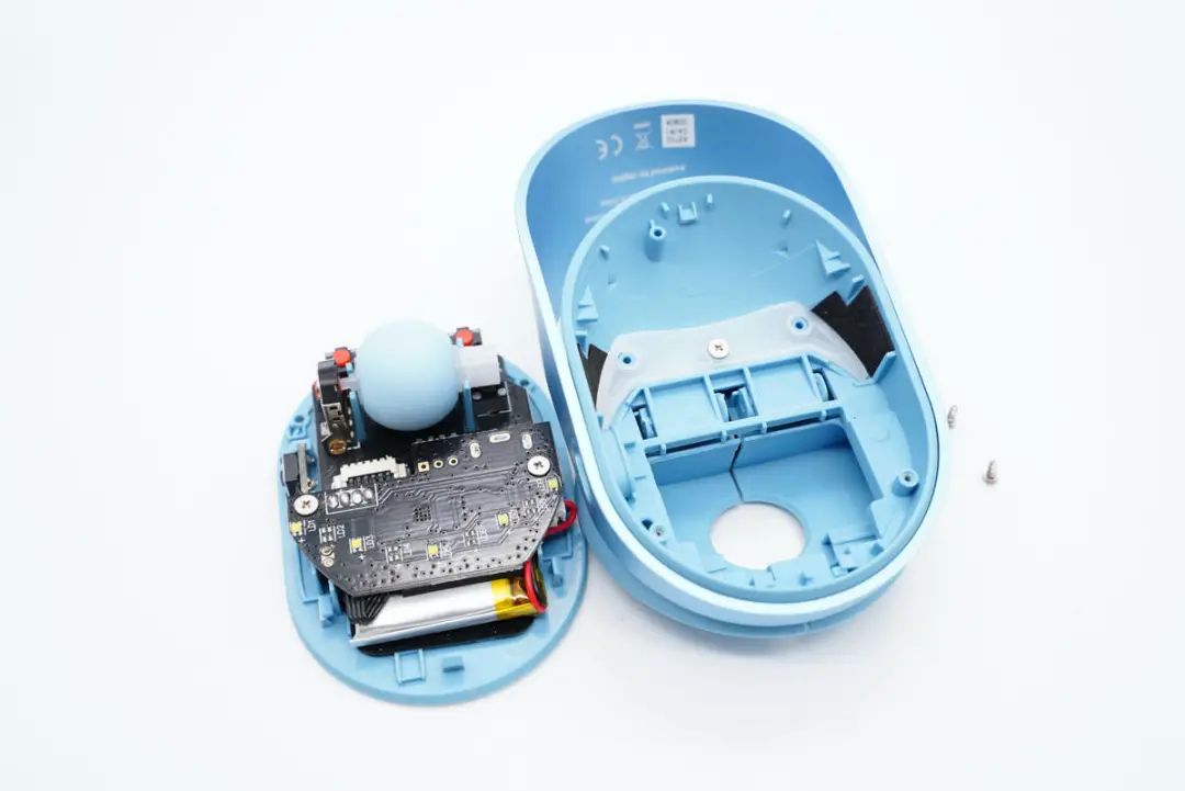 鼠標(biāo)內(nèi)部采用兩塊PCB板連接設(shè)計,PCB板使用螺絲固定。