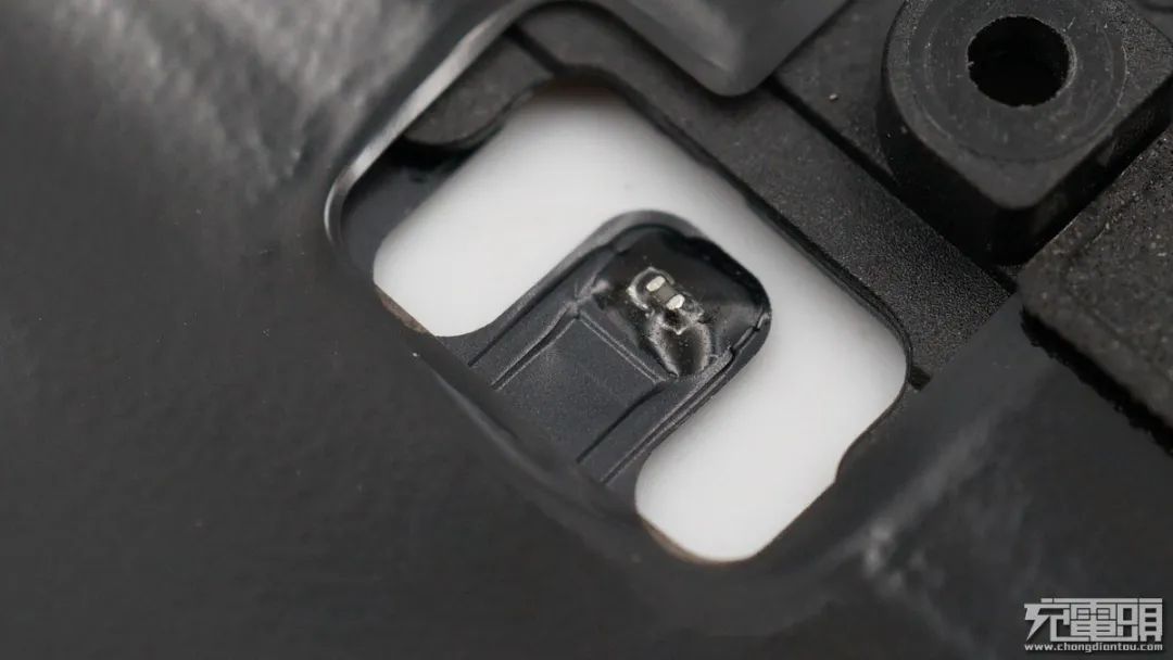 電池和主板之間為插座可拆卸設計,組裝方便,也方便后面對電池進行更換等服務,同時電池保護板背面與鋁合金中框之間還有一條導熱硅膠,在高速充電時可為保護板散熱,降低溫升。