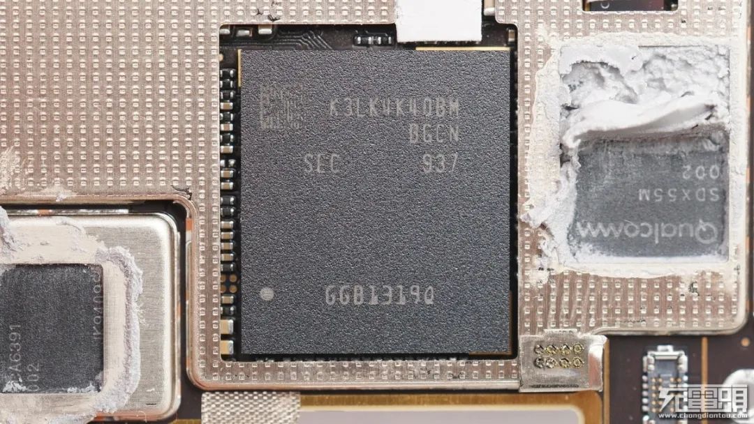 三星 K3LK4K40BM 12G LPDDR5內存,下面是高通驍龍865 處理器。